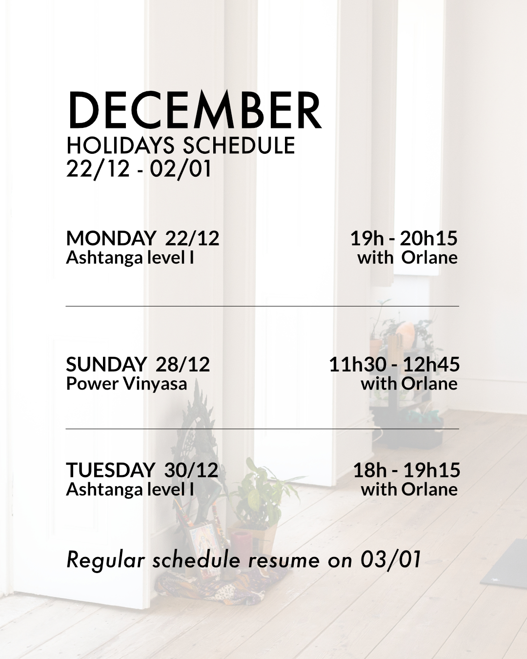 There is no Mysore -style Ashtanga practice on Moon days (Full moon and New Moon). If you wish to know about Ashtanga Yoga and Mysore-style classes, please go to the section of our site “About Practices”.
